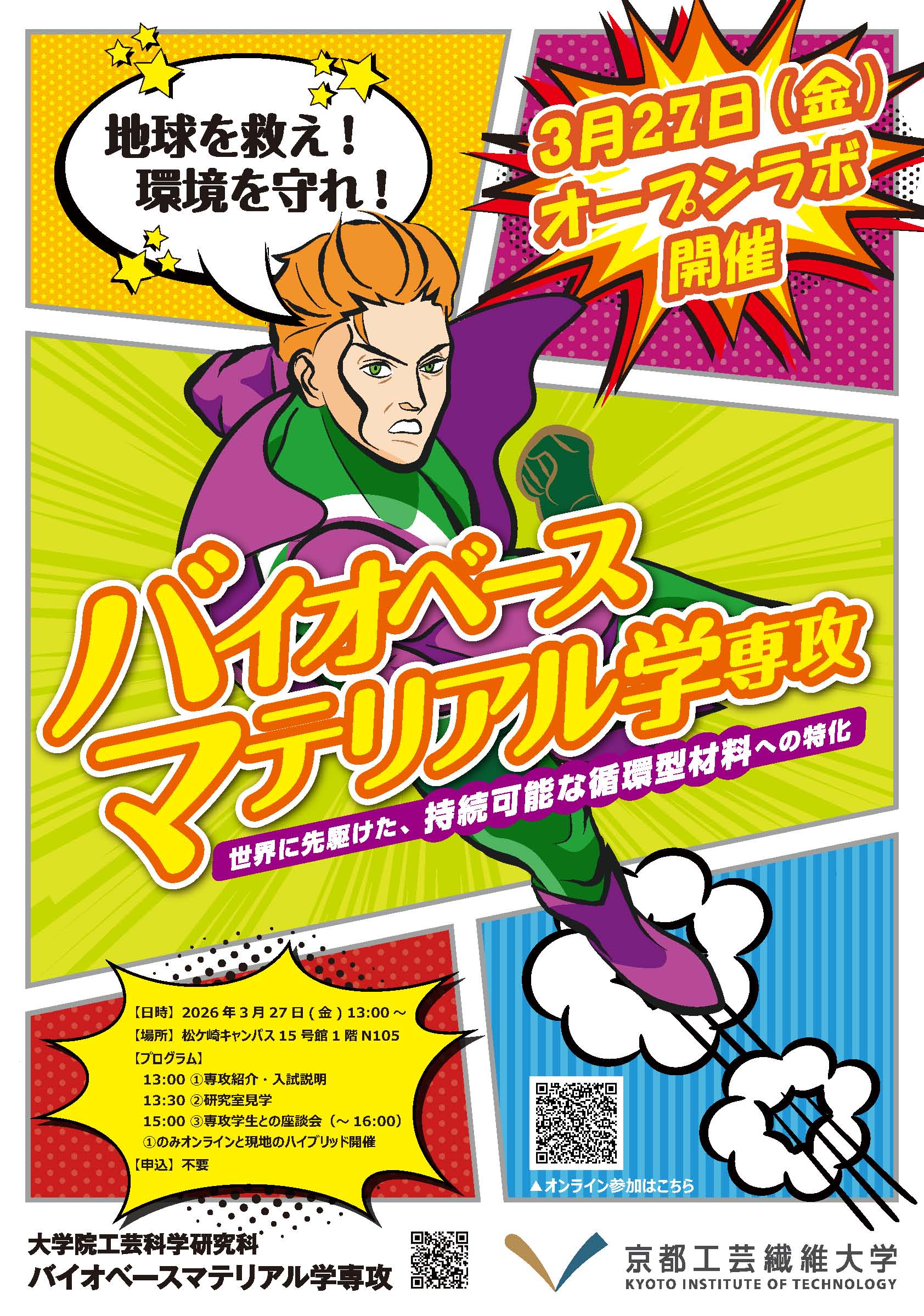 「バイオベースマテリアル学専攻 オープンラボ」を開催します(3/27)